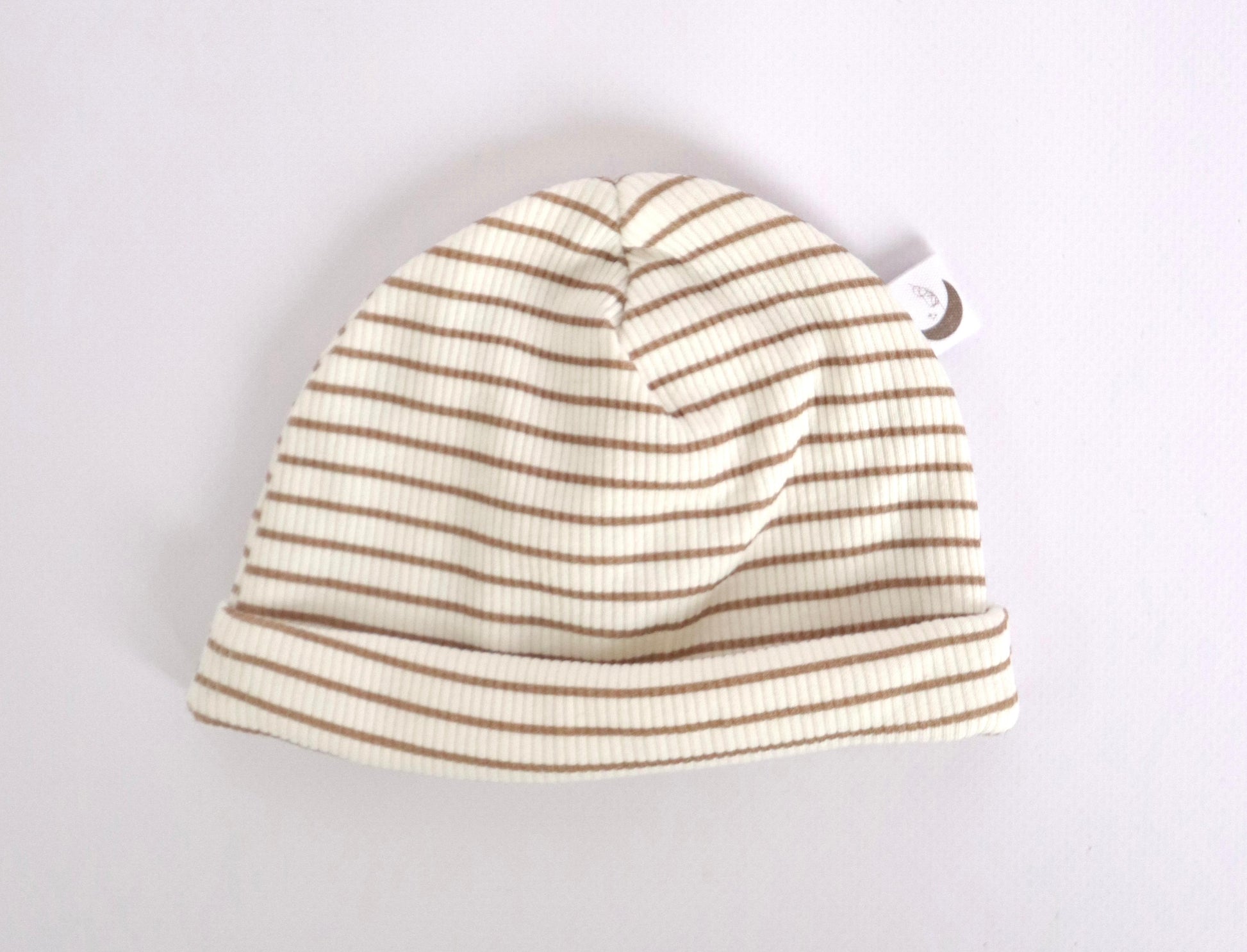 Een heerlijk zacht en rekbaar mutsje, gemaakt van comfortabele ribstof met streepjes. Ideaal om het hoofdje van je baby warm te houden, zowel binnen als buiten. De maat van het mutsje is tot 3 maanden.