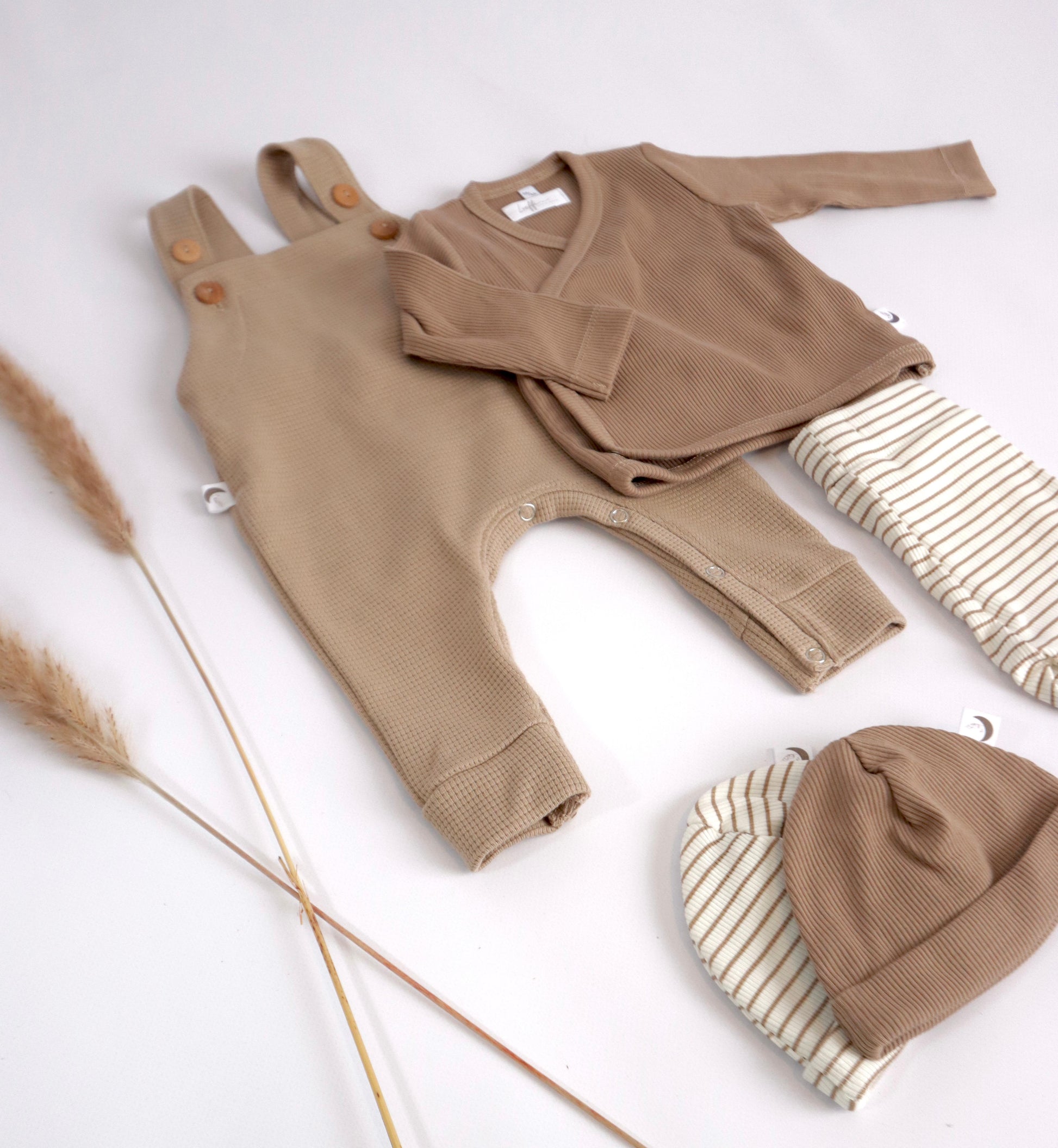 Perfect te combineren met de longsleeve polo rib streepjes Taupe of het ribbroekje met streepjes uit onze collectie.